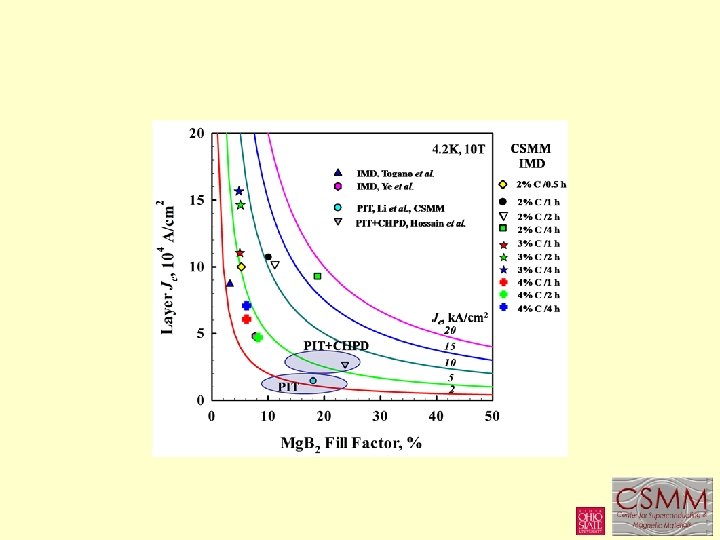 2%C-doped monocore PIT 2%C-doped monocore IMD Comparison of the layer critical current densities at 4. 2 K, 5 T --- PIT, 105 A/cm 2; IMD, 106 A/cm 2