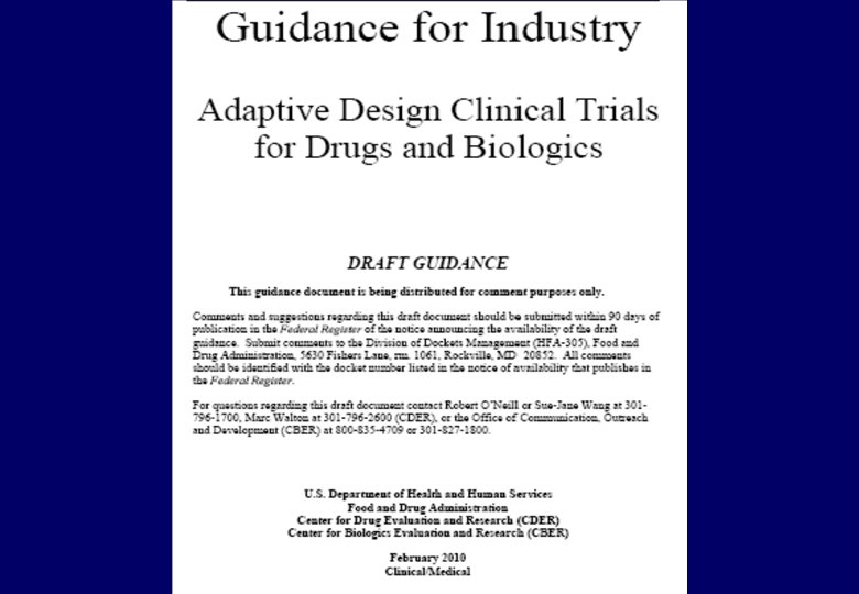 Adaptive design FDA’s draft guidance for industry on adaptive design clinical trials (http: //www. fda. gov/downloads/Drugs/Guidance. C ompliance. Regulatory. Information/Guidances/U CM 201790. pdf).