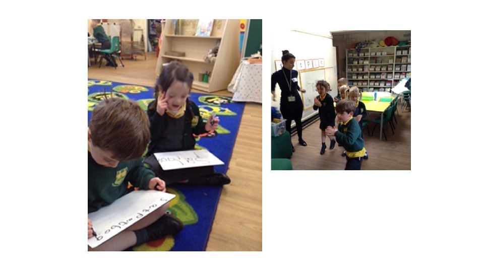 Phonics • • Follow DFES letters and sounds programme Use Jolly Phonics songs to support 4 whole class lessons per week Small group phonic based activities in other areas