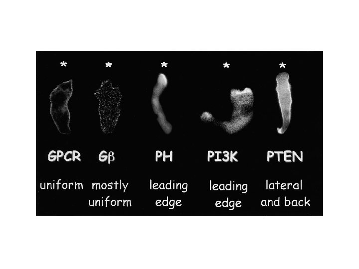 PIP 3 FRONT chemoattractant PI 3 Kg b g Gai Vavs, DOCKs, P- Rex GEFs Polimerizzazione actina, protrusione Cdc 42 Rac Rho Contrazione acto-miosinica PTEN GTPasi per Rac Inattivazione Rac ai lati e nel retro BACK