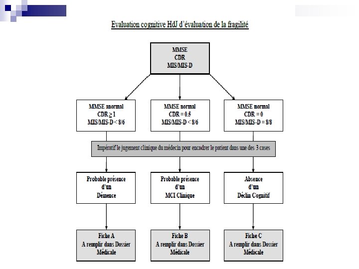 Domaine cognitif n MMSE (0 -30) CDR (0 -0. 5 -3) MIS / MIS-D (8/8) n Possibilité d’une évaluation neuropsychologique n n