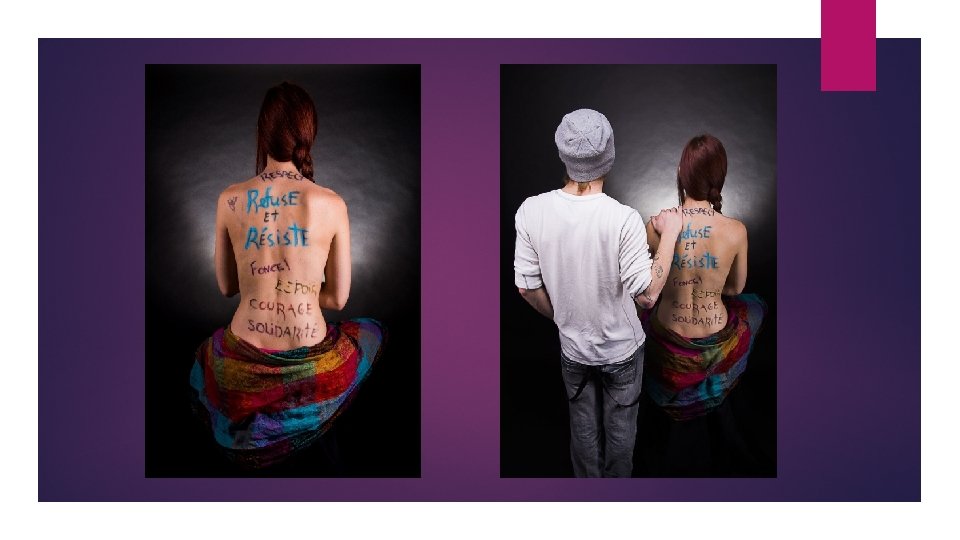 Mise en contexte � Participation à plusieurs projets de recherche réalisés auprès de femmes et d’enfants victimes de violence � Intérêt pour les processus sociaux qui soutiennent ces violences (ex : colonialisme) � Considérant la complexité et les différents rapports de pouvoir impliqués dans la (re)production de la violence, intérêt pour le paradigme féministe de l’intersectionnalité � Intersection entre le subjectif, le micro et le macro � Intersection entre les différentes identités sociales / rapports sociaux � Intersection des différents savoirs (militants, académiques, pratiques et expérientiels) Bilge, 2015; Flynn et al. , 2014; Hancock, 2007