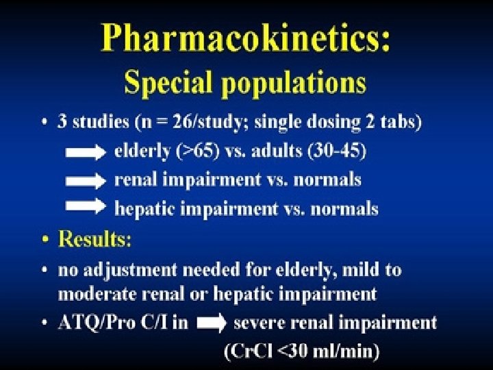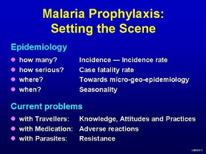 Incidence of severe* adverse events during chemoprophylaxis Study Population MQ Doxy A+P C+P Phillips, 1995 Australian 11. 2 6. 5 - - Schlagenhauf 1996 Swiss 11. 2 - - - Barrett, 1996 UK 17 - - 16 Steffen 1993 European 13 Hogh** 2000 International Overbosch*** 2001 International 5 Schlagenhauf 2003 International 10. 5 * Interferes with daily activity ** Stopped taking antimalarials 16 5. 9 0. 2 2 1 - 6. 7 12. 4 *** Hyclate > monohydrate