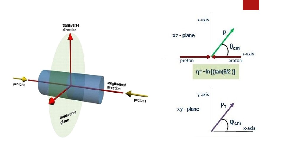 Pseudo-rapidity, Azimuthal angle and Transverse Momentum Pseudo-rapidity η • • • Azimuthal angle • φ is the angle between transverse momentum and x-axis. Transverse Momentum Pt • Pt is the momentum perpendicular to the path of the colliding particles.