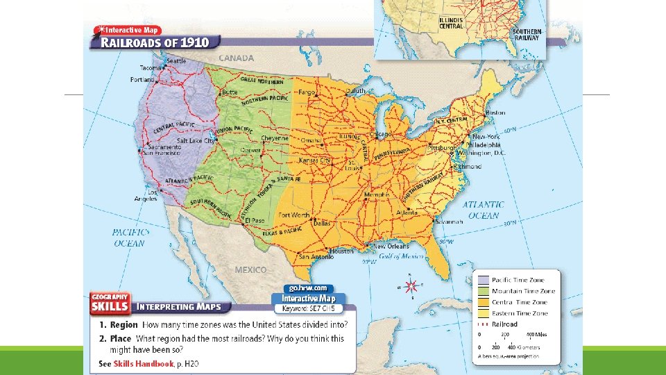 Effects of the Railroads Led to the creation of time zones ◦ Train schedules Chinese and Irish immigrants flooded into the US to work the railroad ◦ Extremely harsh life; Prejudiced attitudes Chinese Immigration Act of 1882 – Barred Chinese Immigration to the West Coast