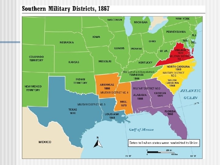 The Freedmen’s Bureau n n n Established schools and hospitals Provided food, housing, medical aid, legal assistance Helped freed slaves find jobs