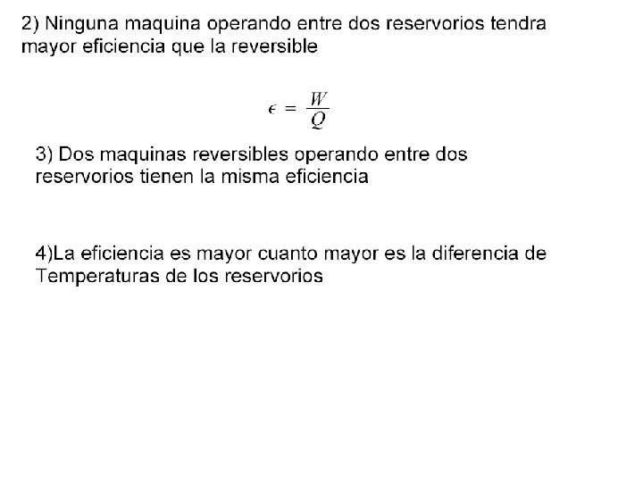 Otro posible arreglo seria el siguiente Si T 1>T 2 Q 1 Q 3 W Q 2 Podemos anular una de las fuentes!!!! Y tener Trabajo positivo…. No es posible Representa un cortocircuito termico