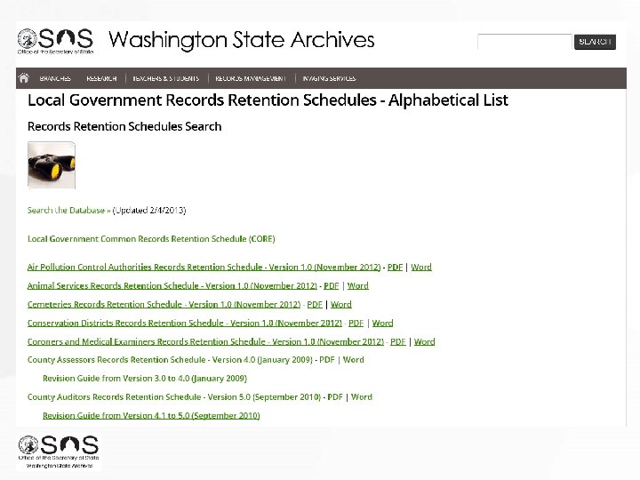 Local Government Records Retention Schedules Focus on key concepts and terms http: //www. sos. wa. gov/archives/Records. Management/records_local. aspx