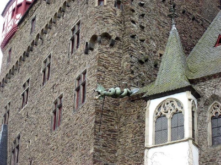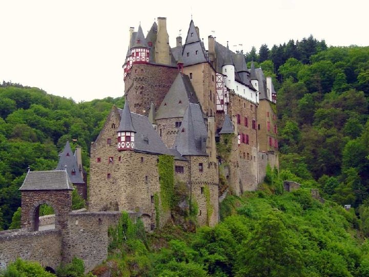 Burg Eltz, está cerca de Coblenza, en la confluencia de los ríos Rhin y Mosela. En 1268 la familia Eltz se dividió en tres ramas: la Kempenich, la Rubenach y la Rodendorf. Debido al costo que suponía la construcción de castillos fortificados en aquella época, las tres familias compartieron el presupuesto de Burg Eltz, fue restaurado en el siglo XIX, dejándolo como estaba originalmente en el siglo XVII. El actual propietario, Fausto von Stromberg, pertenece a la 33ª generación de la familia Eltz, que posee el castillo desde hace 800 años. La familia ocupa las partes del castillo que no están abiertas al público, aunque su residencia principal se halla en Eltville.