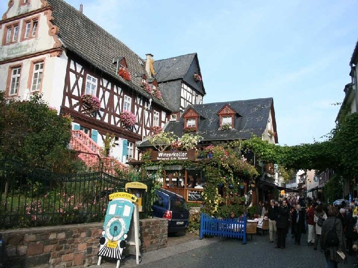 Rüdesheim, una pequeña localidad que se encuentra a orillas del río Rin con gran atractivo turístico principalmente debido a su estilo arquitectónico y a sus tradiciones Es conocida por sus viñedos y los vinos.