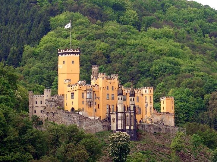 Schloss Stolzenfels (Castillo de la Roca del Rey) se encuentra a algunos kilómetros de Coblenza, a medio camino por la ladera frente a la desembocadura del río Lahn. Una vez fue la sede de los arzobispos de Tréveris y hoy es un museo.
