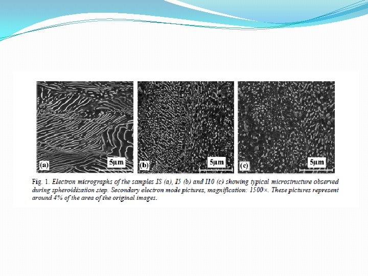 �Microestrutura de aço laminado a quente Fe – 0. 22% C – 0. 99% Mn - 0. 02% Si – 0. 059% Al. �Grãos de ferrita equiaxiais e perlita bandeada (plano longitudinal).