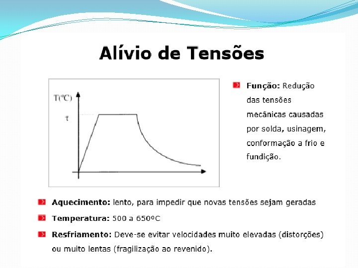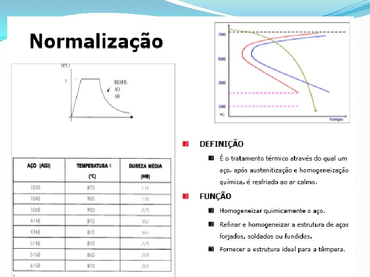 Principais Tratamentos Térmicos Solubilização e envelhecimento Recozimento Normalização Esferoidização ou Coalescimento Têmpera e Revenido