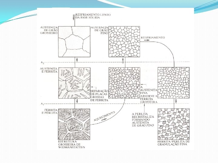 RECOZIMENTO TOTAL OU PLENO n Constituintes estruturais resultantes Hipoeutetóide ferrita + perlita grosseira Eutetóide perlita grosseira Hipereutetóide cementita + perlita grosseira