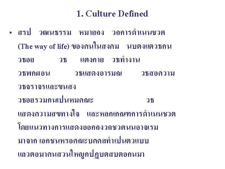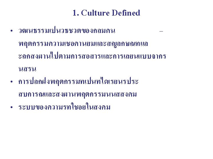 2. National Culture Individual Must always be considered Culture Values we share as member of culture group Universal As humans we all need food, love, shelter, etc