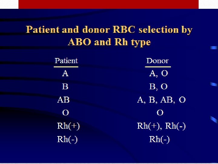 BLOOD LOSS- signs, symptoms and indication for transfusion Volume Lost m. L Clinical signs Preparation of choice % of Total Blood Vol. 500 10 20 None; tachycardia 1500 30 drop in BP 2000 40 shock No transfusion or crystalloid solution or colloids or RBC if necesssary crystalloid solution plus colloids plus RBC or blood if available