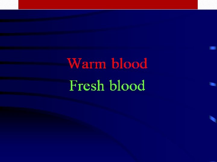WHOLE BLOOD TRANSFUSION-indications Acute hypovolemia (hemorrhagic shock) Massive transfusion (>4 -5 L/24 hr ) Exchange transfusion in infants