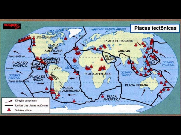 Resumo • Limite Divergente – quando ocorre a separação de placas; • Limite Convergente – quando se dá o encontro de placas; • Limite Transformante – quando há o movimento paralelo entre as placas.
