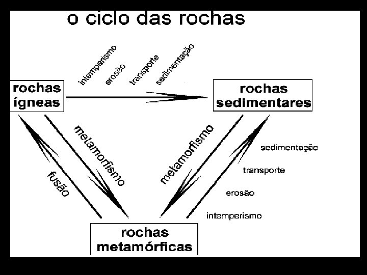 Intemperismo Químico • Processo que gera a decomposição química das rochas, por meio da reação entre minerais e a água.