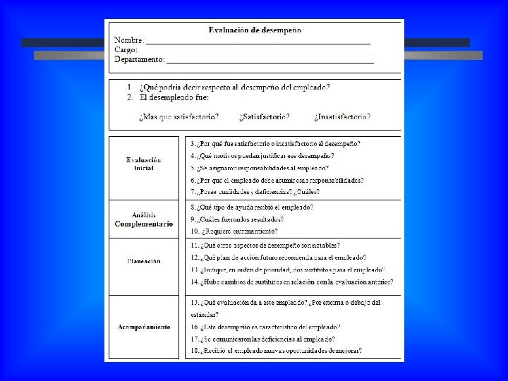 Quién debe evaluar? Se utilizan diferentes alternativas para evaluar el desempeño del empleado. ¨ Autoevaluación del desempeño ¨ El gerente ¨ El empleado y el gerente ¨ El departamento de RH
