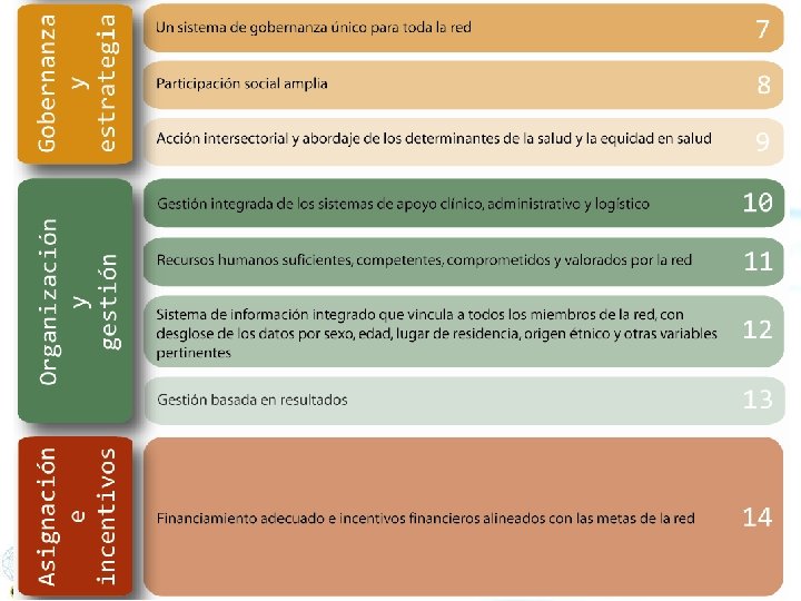 Valores, principios y elementos l ria l cto er se Res po y re nsabilid ndic ad cuen ión de tas Int Recursos humanos adecuados ión ac n niz ga estió Or s Y g tima óp ción Solidaridad Po pro lítica Pro gram s y -eq as uid ad ste nib ilid ad Marco legal, Político e Institucional aceptables ia stic l u J cia so Enfasis en promoción y prevención Part Equidad icipa Derecho a la Salud So en in ción te co gra inte nt da gr in ua y al, ión ntac Orie iliar y fam itaria un com ida d Capacidad para responder a las necesidades de salud At a n ió ac d nt lida rie a O la c Re ade curso cua s d a nec Las os esi dad es n ió oria c t Ac sec r te in Prim cont er acto A ap ten ro ció pia n da tura Cober al s univer os sm ión i n c ca Me rticipa pa ctiva de a