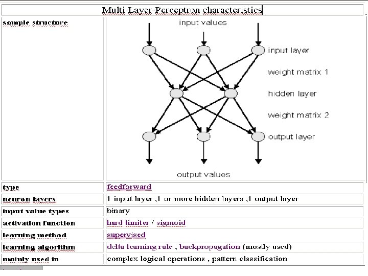Types of Neural Nets Multi-Layer-Perceptron • The Multi-Layer-Perceptron was first introduced by M. Minsky and S. Papert in 1969. It is an extended Perceptron and has one ore more hidden neuron layers between its input and output layers. Due to its extended structure, a Multi-Layer. Perceptron is able to solve every logical operation, including the XOR problem.