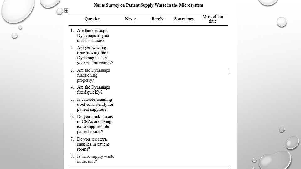 Reducing Patient Supply Waste Through Nurse Education to Improve Quality of Patient Care in the Clinical Microsystem Lale Johnston, MSN, RN School of Nursing and Health Professions Problem I identified the need for an improvement project for reducing patient supply waste after the microsystem analysis in the 19 bed orthopedic unit. I estimated the average cost of discarded supplies as $50 per patient, which is $25, 000 annually. Methods Results SWOT Analysis With increased nurse efficiency and saved RN times, estimated the saving would be $188, 100 first year and $203, 100 second year. The purchase of new Dynamaps will help decrease staff frustrations and stress which will be reflected with patient experience, increased HCAHPS scores, and more reimbursement for the organization which will help increase the overall quality of patient care. Aim My global aim was to increase the quality of patient care by reducing patient supply waste 50% in the microsystem to help save costs while increasing staff efficiency and improving the overall patient and staff satisfaction. Lewin’s Three Stage Change Model Methods Fish-Bone Diagram Project Timeline Conclusion The PDSA Cycle After the implementation of project, the estimate of patient supply waste was $35 per patient annually. Even though I did not reach my goal of a 50% reduction in supply waste, this was still a great start to help improve not only the quality of patient care, but also the patient and staff satisfaction. References Lewin’s Three Stage Model. 2017. Retrieved from file: ///Users/macuser/Desktop/Screen%20 Shot%20 2017 -0425%20 at%202. 45. 56%20 PM. png The PDSA Cycle. 2012. Retrieved from https: //theimprovementplace. files. wordpress. com/2 012/01/new-picture-4. png