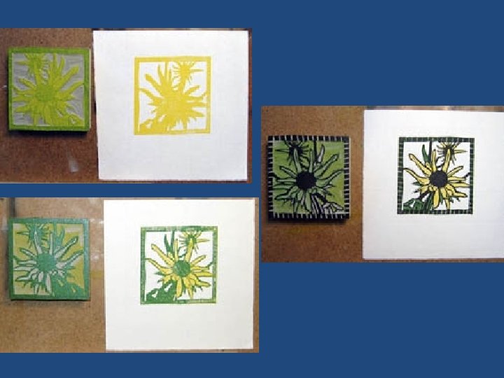 Reduction Prints • Relief Linoleum Printing taken to a higher level • Essentially, you will select a design to create a print of. Then you will simplify the image and transfer it to linoleum. You then need to plan which areas will be what color and carve the block accordingly. • Look at the examples in the presentation to help you better understand this process.