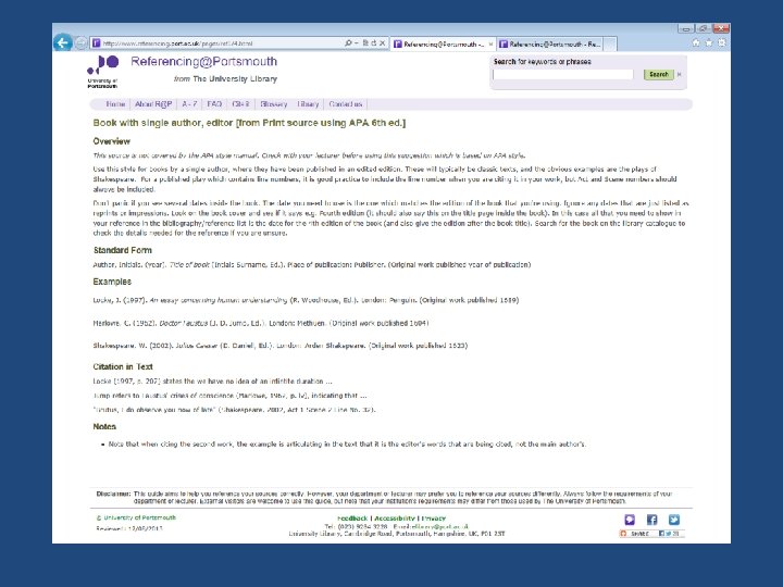 Title The student’s guide to writing: grammar, punctuation and spelling Edition 2 nd ed. Author Peck, J. , & Coyle, M. Publisher Palgrave Macmillan Year 2005 Place Basingstoke This example shows where to find all the information necessary to compile a book reference