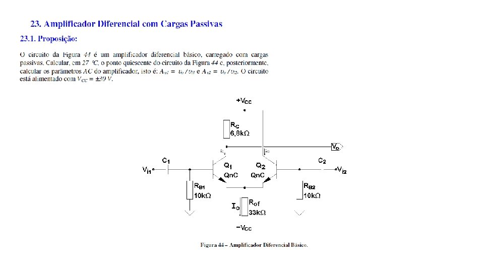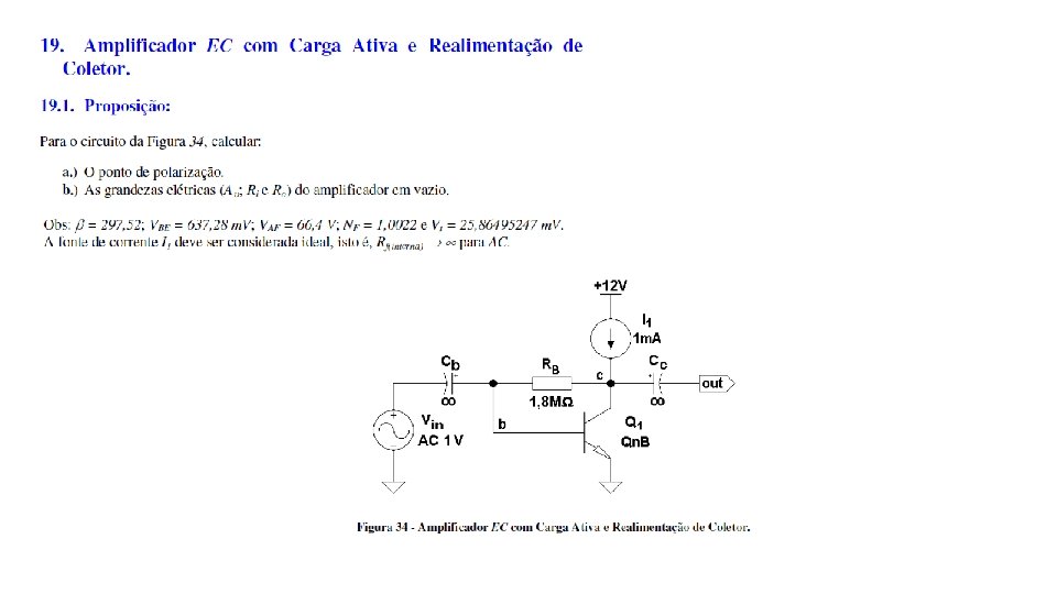 Exercício Assunto Pg. Análise DC Pg. Análise AC Pg. 17 Amplificador DC com Realimentação Negativa 89 -93 não 18 Amplificador EC Genérico 93 -98 sim 94 -95 sim 95 -98 19 Amplificador EC com Carga Ativa e Realimentação de Coletor 98 -102 99 99 -101 20 Amplificador Isolador com Alto Desempenho 102 -107 sim 102 -103 sim 103 -107 21 Amplificador Operacional Idealizado 107 -114 sim 108 -109 sim 109 -114 22 Estabilizador de Tensão 114 -121 não 23 Amplificador Diferencial com Cargas Passivas 121 -124 sim 122 -123 sim 123 -124