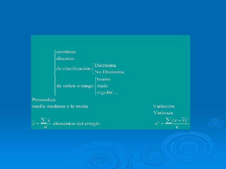 II. Estadística Descriptiva • Ejemplos. Tabla 1. Una distribución de nueve números. 3 (a) Tabla 2. Mediana de una distribución de ocho números. 3 (b) Tabla 3 (a) y (b). Cálculo de la varianza de una distribución de nueve números.