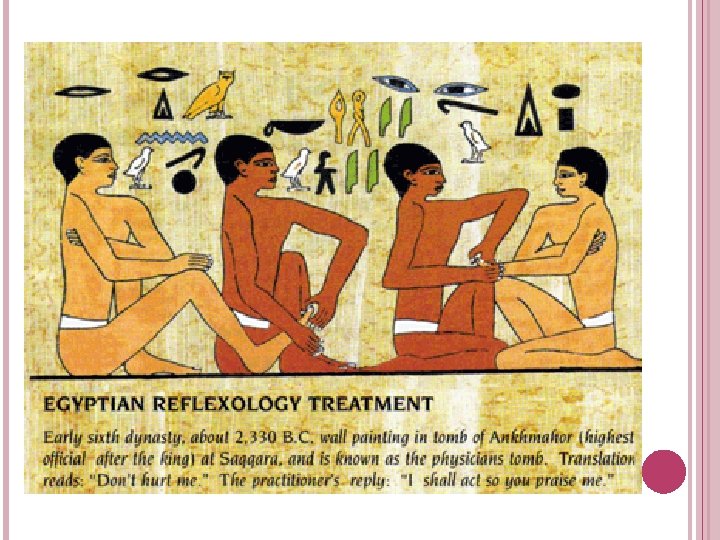 GUIDELINES FOR TREATMENT Wash hands, trim nails, watch posture, relax, breath, stay grounded Take medical history For client – no stimulants, depressants or heavy meals before session Medication alcohol or drugs may reduce sensitivity More relaxation and less pressure for first session For sore areas go to pain threshold, work other areas and come back, work from different directions Answer questions in general terms Encourage rest after the session