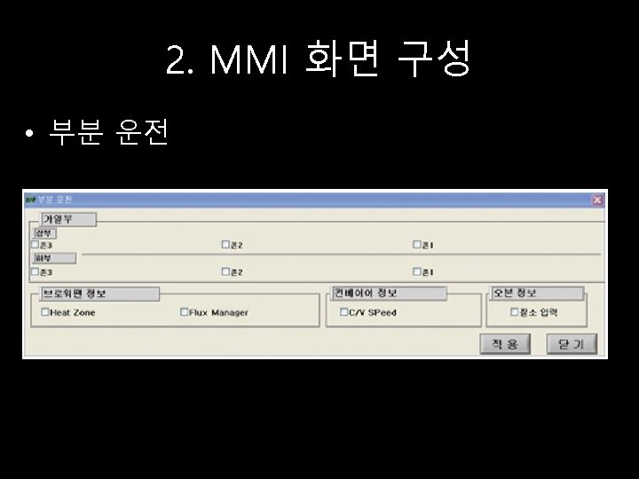 3. 구동부 • Conveyor System 속도 및 폭 조정 : closed loop control • 폭 조정용 Conveyor System : MAX, MIN Limit Sensor 장착 • 무정전 공급 장치(UPS) : uninterruptible power supply(무정전 전원공급장치)