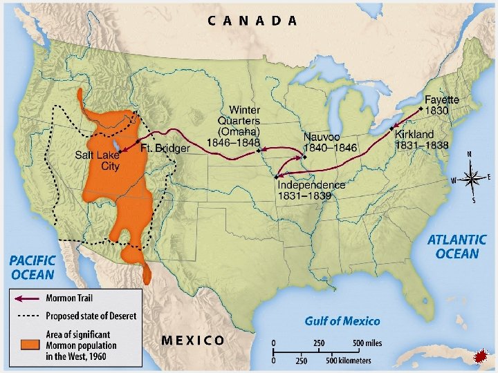 Mormons • Brigham Young, Smith’s successor, led the Mormons westward in 1846 -1847 to Utah where they could live and worship without interference