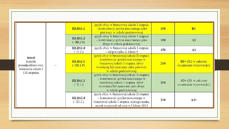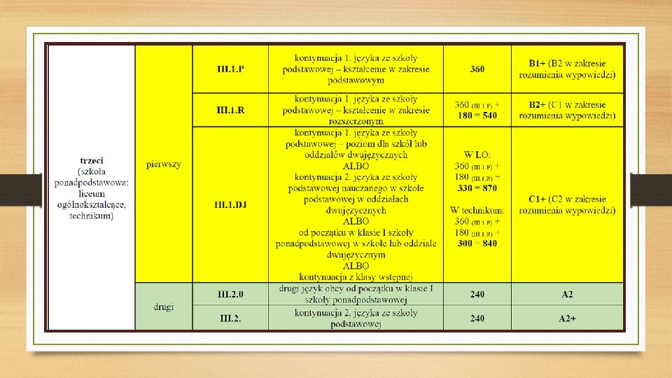 W NOWEJ PODSTAWIE PROGRAMOWEJ ZACHOWANO RÓWNIEŻ: § nawiązanie do Europejskiego Systemu Opisu Kształcenia Językowego (ESOKJ) w przypadku każdego wariantu podstawy; § określenie oczekiwanych umiejętności w języku, z zachowaniem struktury wymagań ogólnych i szczegółowych; § zasadę kumulatywności: na wyższym etapie edukacyjnym obowiązują wymagania z etapów poprzednich. § W przeciwieństwie do podstawy z 2008 r. w nowej podstawie programowej każdy wariant zawiera pełny zapis wymagań ogólnych i szczegółowych!!!