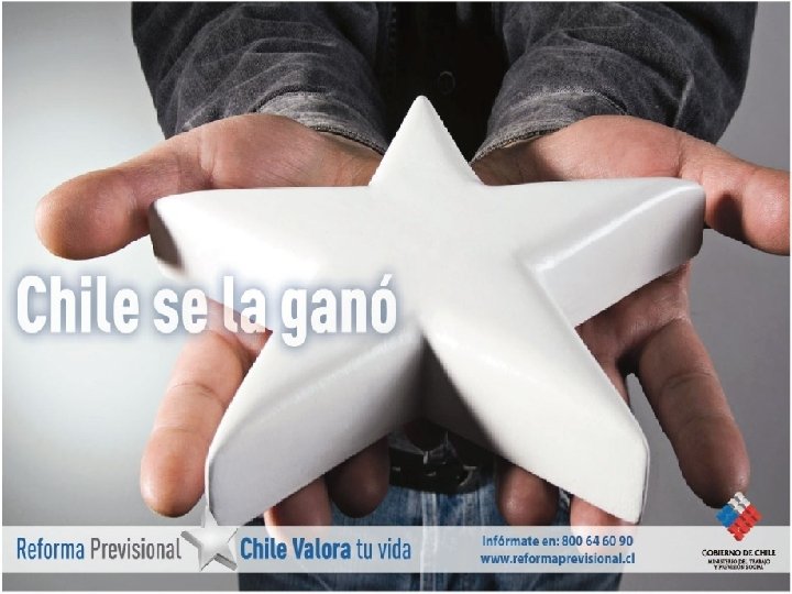 Objetivos de la Reforma Previsional II Participación Ciudadana • Dotar a los ciudadanos de conocimiento y capacidad de ejercer sus derechos • Preparar a los ciudadanos para asumir su propio futuro en materia previsional • Participación directa en la toma de decisiones en la inversión de sus fondos voluntarios • FEP; Comisión de Usuarios Reformas de los mercados • Aumento de alternativas de inversión para alcanzar mejores rentabilidades de los fondos y así obtener mejores pensiones • Aumentar la transparencia en los mercados • Disminución de costos para los usuarios Reforma Institucional • Crear un liderazgo para la conducción política gubernamental en el ámbito del diseño estratégico de la protección social, • Especialización y reordenamiento de flas distintas instituciones que componen el sector previsional • Reforma SSPS; SP; SUSESO, término del INP y creación de IPS e ISL • Creación del Consejo Consultivo Previsional