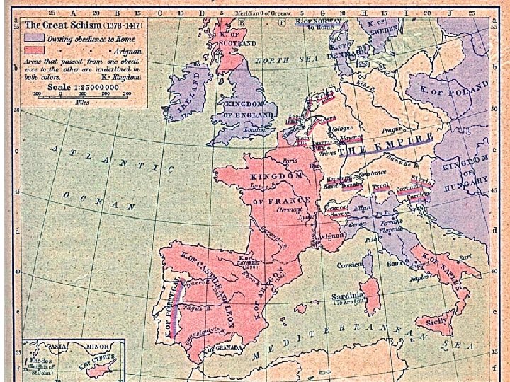 • Paus Gregory IX 1377 1378 • Paus Urban VI terpilih Roma • Paus Clement VII Avignon 1409 • Koncili Pisa • Hasil Paus Baru terpilih • Ketiga Paus dipecat • Diangkat Paus Baru 1417