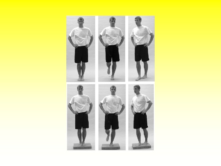 Classification of Balance Exercises • Static – Co. G is maintained over a fixed base of support, on a stable surface • Semi-dynamic – Person maintains Co. G over a fixed base of support while on a moving surface – Person transfers Co. G over a fixed base of support to selected ranges and or directions within the LOS, while on a stable surface • Dynamic – Maintenance of Co. G within LOS over a moving base of support while on a stable surface (involve stepping strategy • Functional – Same as dynamic with inclusion of sports specific task