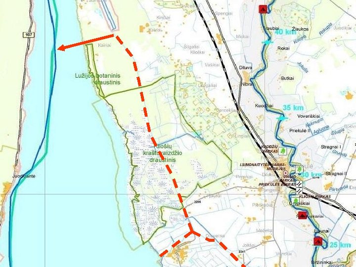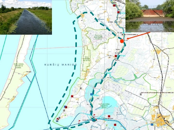 Vandens turizmo trasa Minijos upe – Karaliaus Vilhelmo kanalu ir rytine Kuršių marių pakrante n Išanalizuoti visas galimybes kaip atgaivinti XIX – XX a. vandens kelią n n n n Minijos upe, aplenkiant pavojingą Ventės Rago ruožą, saugiai ir greičiau pasiekti Klaipėdos uostą. Išanalizuoti galimybes įrengti susisiekimo galimybę su rytiniu Kuršių marių farvateriu į Dreverną, Kintus, Šturmus, Ventę. Išanalizuoti laivybos atnaujinimo galimybę Vilhelmo kanalu. Išanalizuoti Vilhelmo kanalo pritaikymo vandens turizmui galimybę. Išanalizuoti Vakarų Lietuvos regiono turizmo paslaugų teikėjų, ypač laivininkų (baidarių, mažųjų ir plokščiadugnių laivų) galimybes plėtoti savo verslą. Išanalizuoti farvaterio įrengimo Kuršių marių rytinėje pakrantėje galimybę. Tiesioginės ir netiesioginės naudos įvertinimas Klaipėdos rajono, Klaipėdos miesto, Neringos, Šilutės rajono savivaldybėms, Išanalizuoti susisiekimo galimybę su Palangos ir Šventosios uostais.