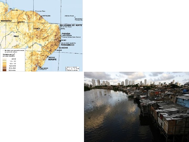 → Processo de Povoamento e População • Séc. XVII: ocupação de São Luiz (Golfão), desenvolvimento da agropecuária ao longos dos rios da região e produção canavieira no litoral; • Séc. XVIII: plantations de algodão levam progresso à região; • Algodão e arroz provocam as primeiras migrações internas no nordeste, quando trabalhadores baianos se deslocaram ao Meio Norte atraídos pela agropecuária; • Predomínio de cafuzos (negros + índios); • Povoamento concentrado nas capitais, litorais e áreas com maior produtividade agrícola (Parnaíba – PI e Caxias – MA);