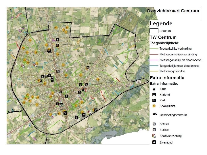 Belang van trage wegen? ! = Duurzame en verkeersveilige verplaatsingen • 65% zijn korter dan 5 km! • Herwaarderen van ontbrekende schakels verkeersveilig netwerk! = Zachte recreatie, sport en jongeren • Fijnmazig netwerk bewegen vlak bij huis!