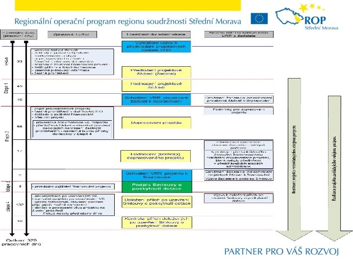 Omezení – specifika související s administrací programu na konci programového období q Není možné bezdůvodně posouvat lhůtu pro dopracování projektů – tj. 2 etapu s tím, že musí být vždy garantován podpis Smlouvy o poskytnutí dotace u projektů zakládajících veřejnou podporu do 30. 6. 2014 q Realizaci projektů není možné posunout a projekty musí být vždy ukončeny nejpozději k 31. 12. 2015, (tj. i nejzazší datum pro způsobilost výdajů) q Případné snížení způsobilých výdajů, uplatnění finanční korekce či odvody za porušení rozpočtové kázně tak bude Řídící orgán ROP Střední Morava vracet zpět do rozpočtu Evropské unie. Jak vyplývá z výše uvedeného, není možné již posouvat lhůty jak pro dopracování projektových žádostí (resp. podpisu Smlouvy o poskytnutí dotace) tak pro realizaci projektů.