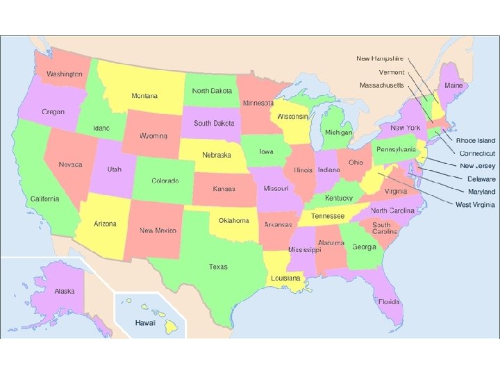 Něco z historie • • 1492 – Krištof Kolumbus 4. července 1776 – Deklarace nezávislosti 1789 – první ústava 1861 – 1865 – válka severu proti jihu, zrušení otroctví (A. Lincoln) • 1941 – Pearl Harbor – vstup USA do 2. světové války