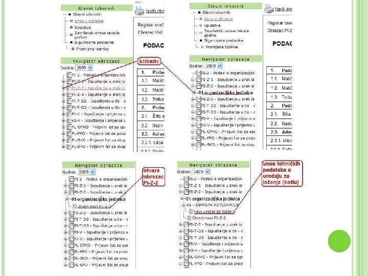 OPĆENITO O ROO Osnovna svrha donošenja Pravilnika je uspostava jedinstvenoga registra o ispuštanju, prijenosu i odlaganju onečišćujućih tvari i otpada u okoliš, u obliku javnosti dostupne baze podataka o onečišćivačima i ispuštanjima onečišćujućih tvari i otpada u okoliš (zrak, tlo i vodu) iz pojedinačnih izvora. Pravilnikom se osigurava primjena Uredbe 166/2006 o uspostavi Europskog registra ispuštanja i prenošenja onečišćujućih tvari ROO se sastoji od 13 obrazaca koji su tematski podijeljeni na područja zrak, voda, tlo i otpad
