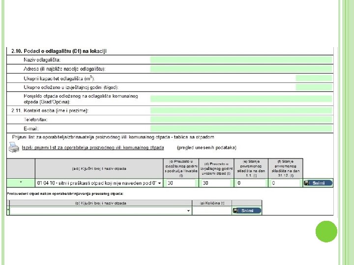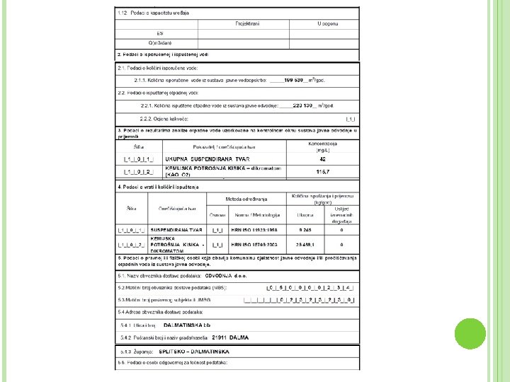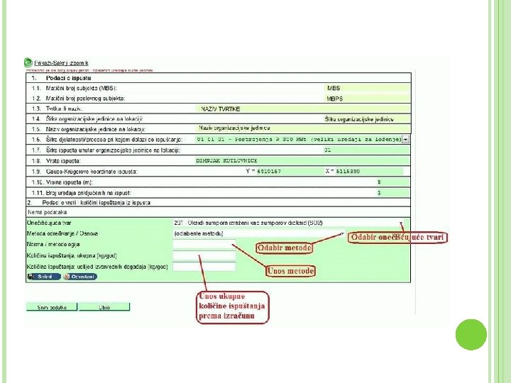 PI-2 OBRAZAC Naglasak: - točka 8 obrasca u kojoj se unose podaci o onečišćujućim tvarima o 8. 1. Ispuštanja u zrak o 8. 2. Ispuštanja u vodu/more o 8. 3. Ispuštanja u tlo o