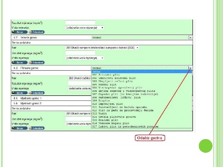 FORMULE ZA IZRAČUNE Nalaze se u priručniku Dodatku A na str. 84 -106 Dva načina računanja: I. II. Preko rezultata mjerenja (osnova 1) – ako su mjerenja provedena Preko emisijskog faktora (osnova 2 b) – ako mjerenja nisu provedena Izračun CO i NO 2 Gdje je E – ispuštanje CO u kg. CO/god odnosno NO 2 u kg. NO 2/god B – količina potrošenog plina u m 3/god – srednja vrijednost izmjerenih koncentracija onečišćujuće tvari u otpadnim plinovima izražena kao mgot/m 3 op fop – faktor otpadnih plinova u mop 3/mg 3 za plinovita goriva odnosno 10, 0 m 3 op/m 3 g