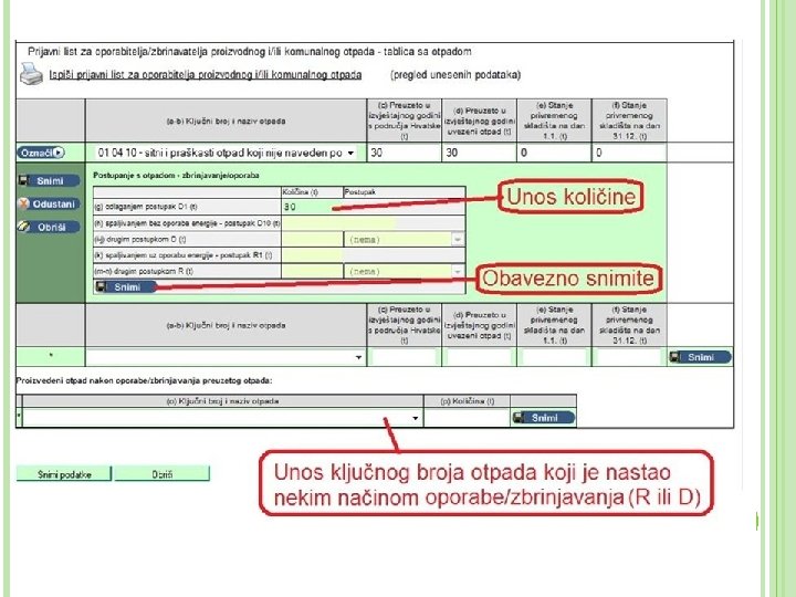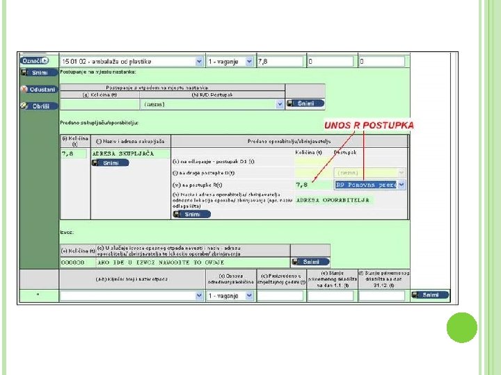 Unos R i D postupaka oporabe odnosno zbrinjavanja