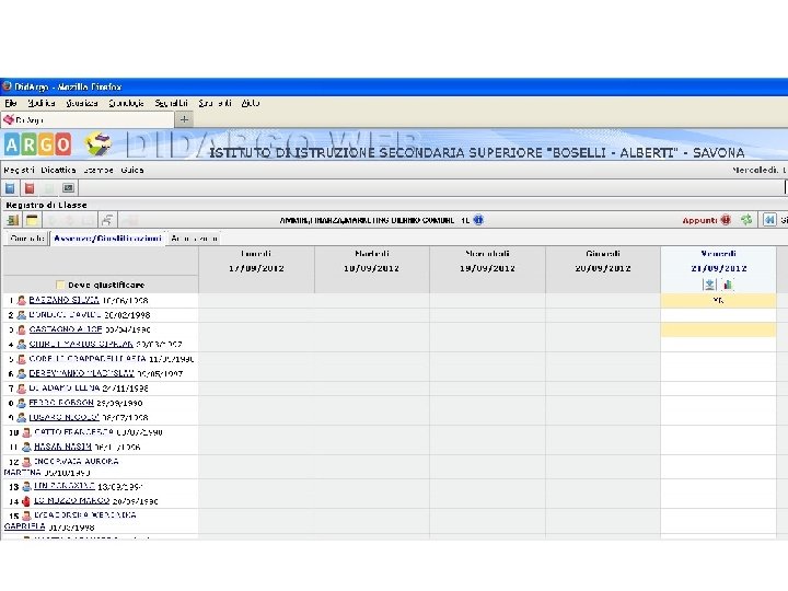Il registro del professore • Si possono importare le assenze dal registro di classe • Si possono segnare assenze solo sul registro del professore (non risultano nel registro di classe, può servire per chi è impegnato in altre attività scolastiche durante le lezioni) • Si possono inserire voti, mezzivoti e voto con il + o il – (suggerirei di eliminare questi ultimi)