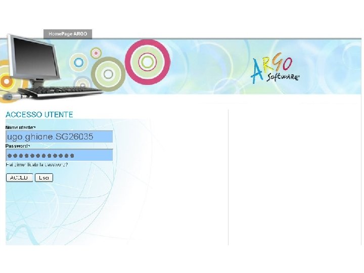Aprire Google • • Si cerca “Argosoft” http: //www. argosoft. it/ Si clicca su “ACCESSO AL PORTALE ARGO” Poi su “Didargo – Modulo Docenti” Si inserisce Nome Utente nome. cognome. SG 26035 • E password è la stessa di scrutinioweb