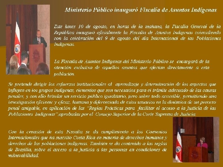 REGLAS BRASILIA EXPERIENCIA 1 COSTA RICA POBLACIONES INDÍGENAS 1. 2. Reglas Prácticas para facilitar el acceso a la justicia de las poblaciones indígenas Fiscalía de Asuntos Indígenas